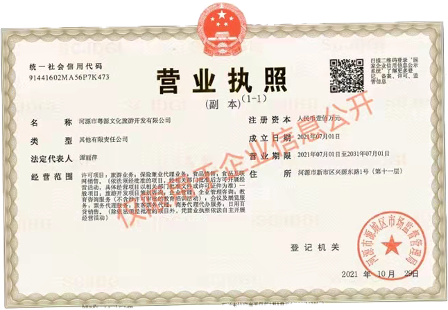 河源市粤源文化旅游开发有限公司成立于2021年7月1日。是由河源市国有资产经营有限公司下属河源市客邑文化旅游投资有限公司与广东省旅控下属广东中旅股份旅游投资发展有限公司在河源市当地成立的合资平台公司;该平台公司为贯彻广东省旅游控股集团有限公司与河源市政府达成的共识,深入参与河源市全域旅游发展,推动河源旅游产业资源整合与开发深入合作。双方将通过设立平台公司、系统支持、河源市文旅资源整合、合作推广等方式,深耕河源市旅游市场,助推河源市旅游产业发展,开展稳定高效的合作。